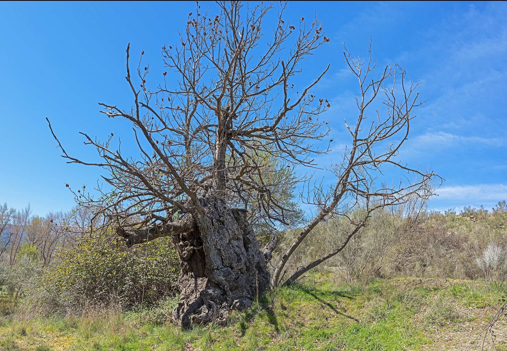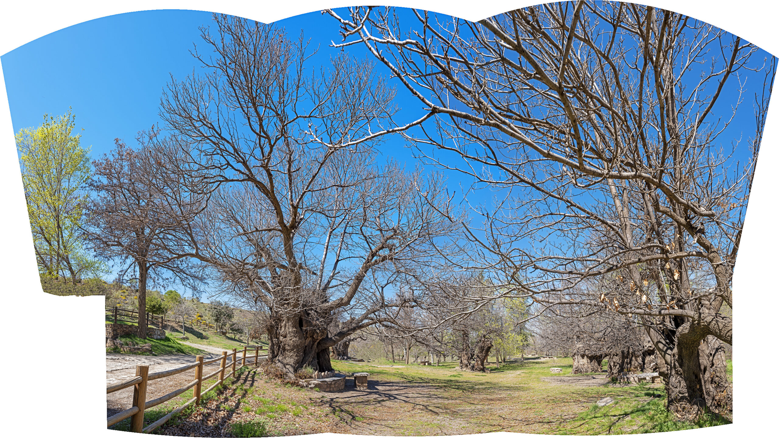 Pero bueno, el paisaje de la portada (sin trasmochar) ¡bien merecía el viaje! El original de esta foto de portada tiene 32x23K píxels, siguiendo nuestra última tendencia de fotografiar árboles i paisajes “para decorar paredes”. Los lugareños, además del jarro de agua fria, nos dieron indicaciones de donde, sí, había castaños trasmochos… relativamente cerca, a unos 80 km, en el pueblo de Huéneja, y allá que nos fuimos.