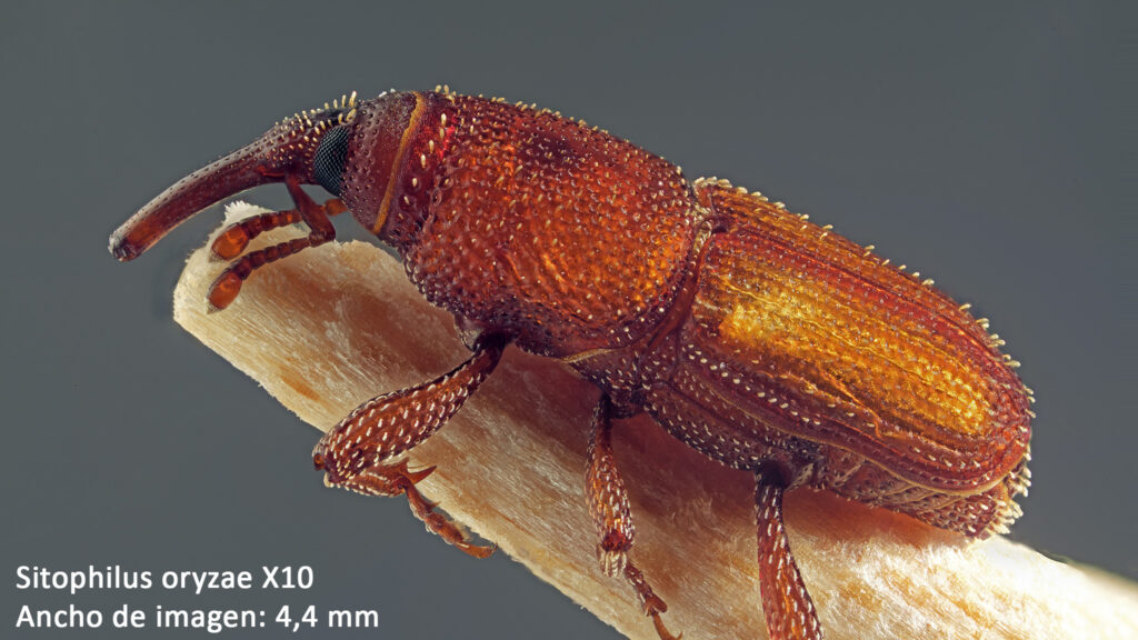 La realidad es mucho más compleja. Empecemos por las 93 fotos de insectos, en realidad estamos hablando de algo más de 10.000 tomas apiladas para poder conseguir detalles de esta calidad. El gorgojo del arroz de la foto de arriba, en realidad, son 50 fotos una sobre otra, ¡claro que se ve nítido! Se ha trabajado mucho para seleccionar “solamente” píxeles “enfocados”.